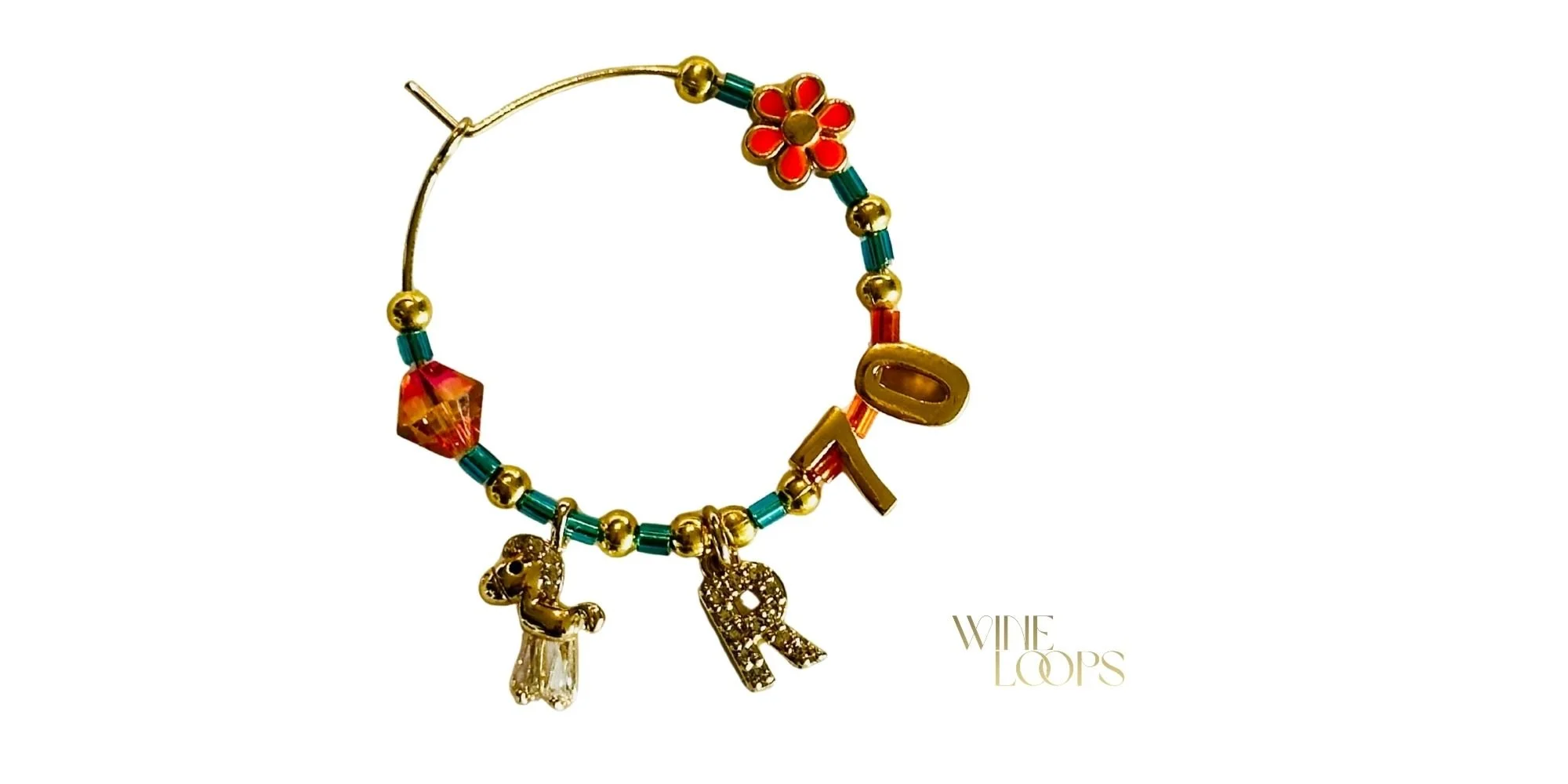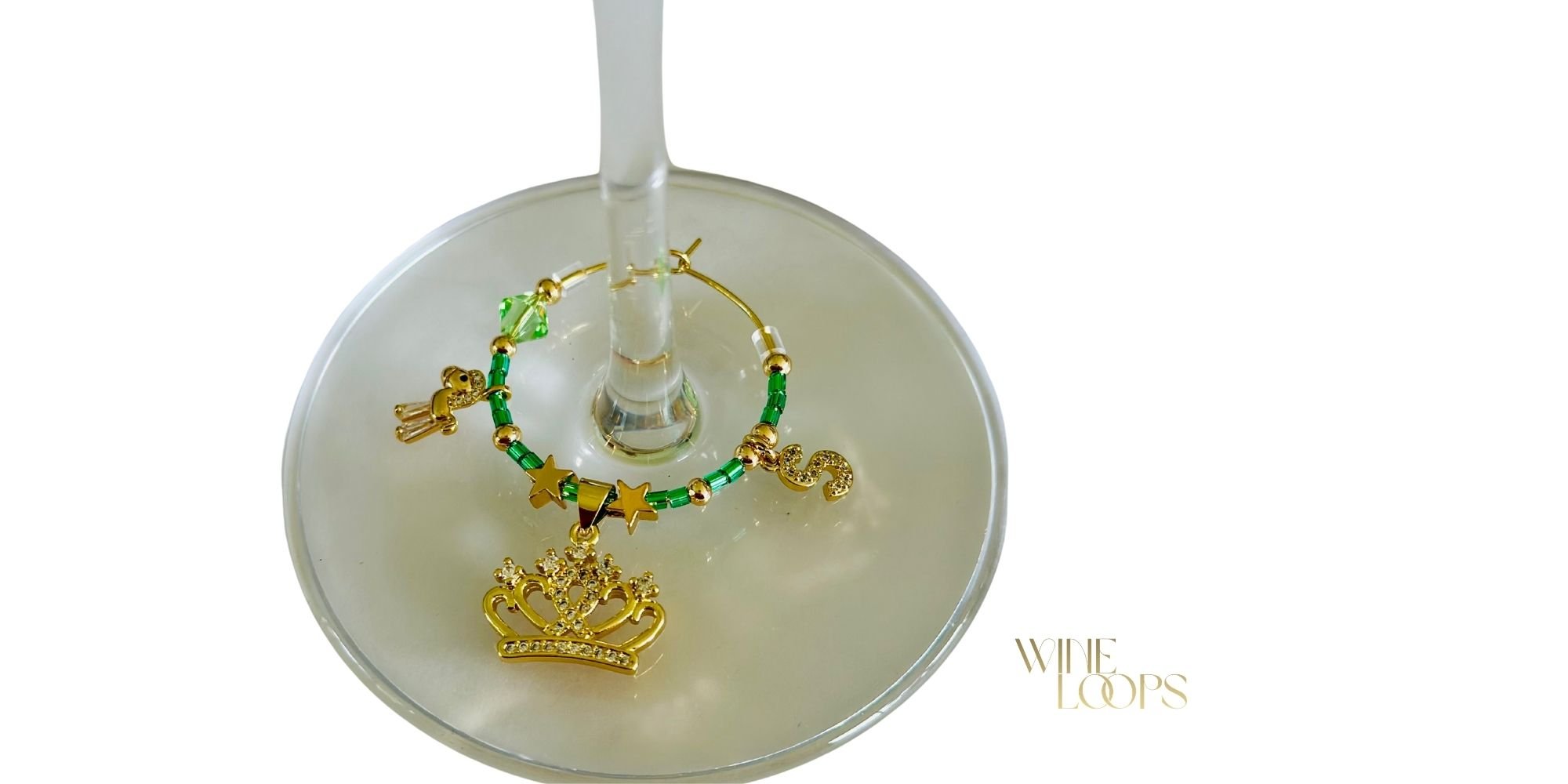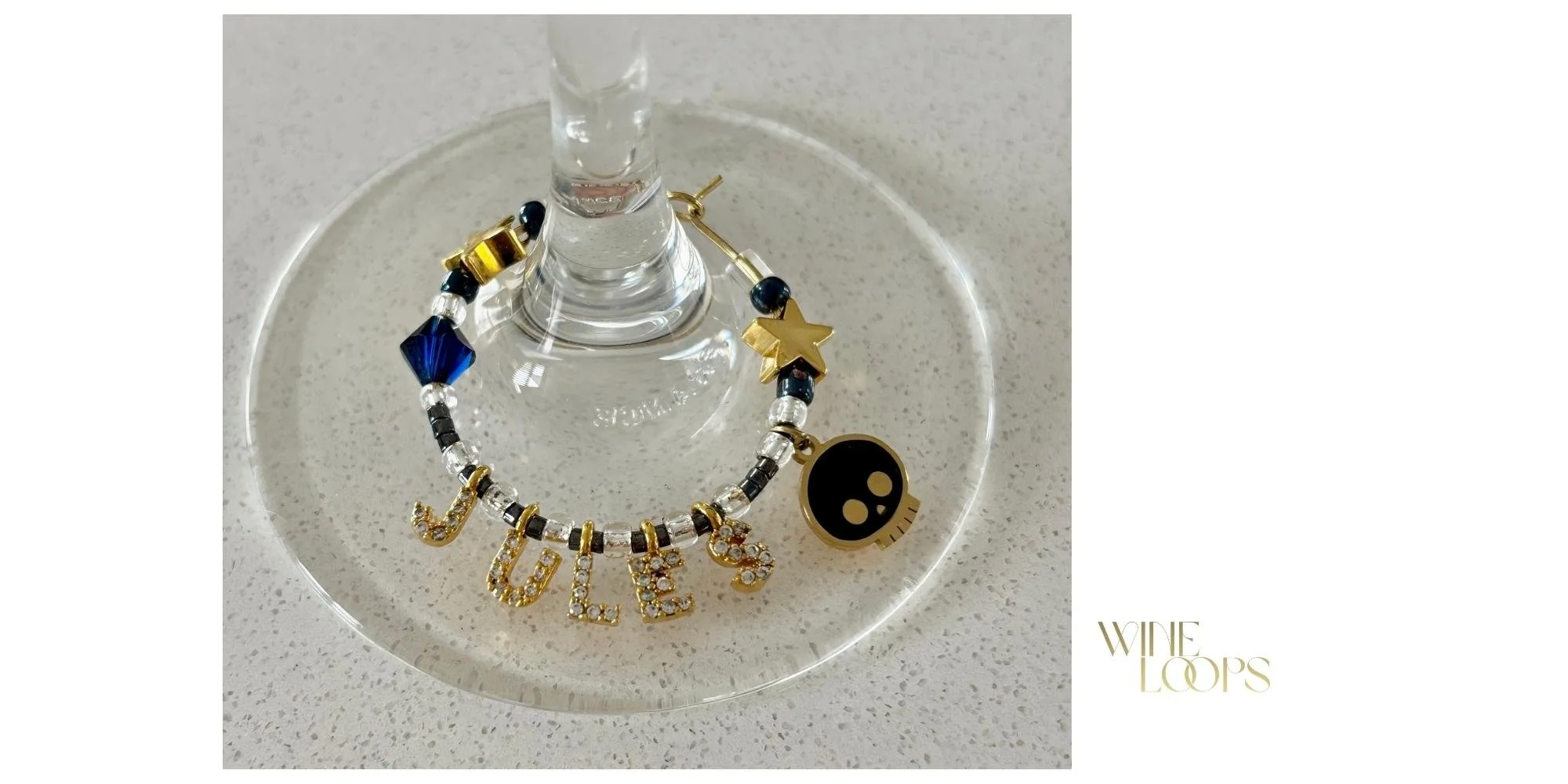 Our bespoke Wine Loops are handcrafted to celebrate the person behind the party, blending favourite colours, personal-interest charms, and a sparkling Swarovski® birthstone, finished with luxe gold-plated accents. Each set is designed to be uniquely theirs, so glasses never get mixed up and memories last well beyond the toast.