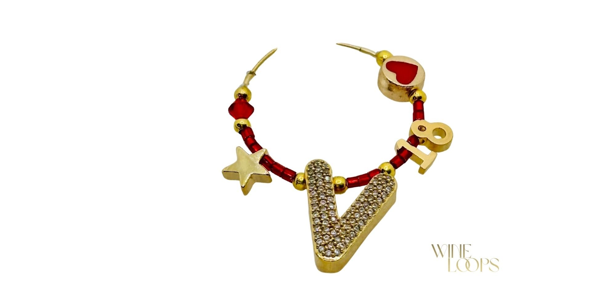 Patricia loved her Wine loop so much that when her daughter was turning 18, she ordered a customised wine loop just for her! Vivian’s favourite colours are red and gold. The brief included sparkles (Swarvoski crystal), a heart and star and the numbers 18.